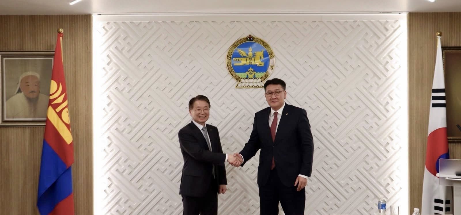 Монгол Улсын Сангийн сайд Б.Жавхлан Бүгд Найрамдах Солонгос Улсын Шадар сайд Гү Юн Чоль-той уулзаж, хоёр улсын санхүү, эдийн засгийн салбар дахь хамтын ажиллагаа, хэрэгжиж буй төсөл, хөтөлбөрүүдийн явцын талаар санал солилцов.
