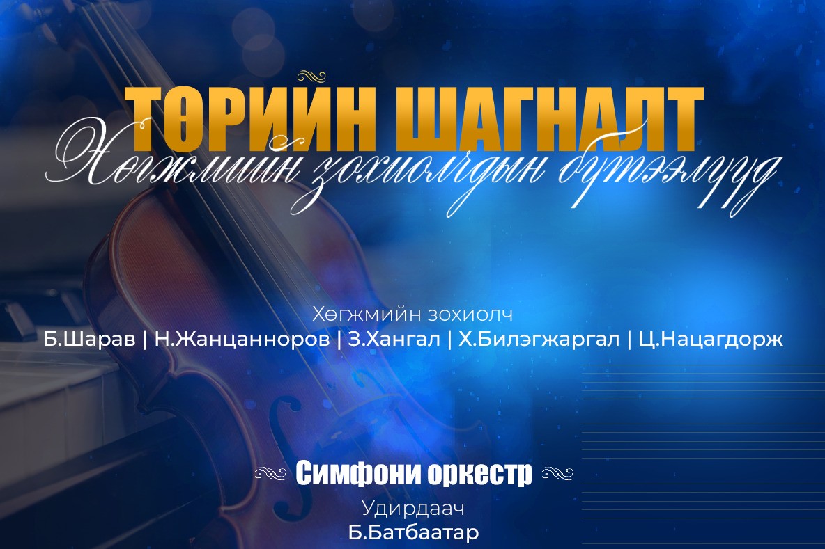 Улсын Филармонийн симфони оркестр Монгол Улсын төрийн шагналт хөгжмийн зохиолчдын шилдэг бүтээлүүдээс толилуулах концертыг зохион байгуулах гэж байна. Энэ концерт нь үндэсний хөгжмийн урлагийг шинэ түвшинд хүргэж, симфони, дуурь, балет, кино хөгжмийн салбарт үнэтэй хувь нэмэр оруулсан бүтээлчидийн өв соёлыг түгээн дэлгэрүүлэх зорилготой.