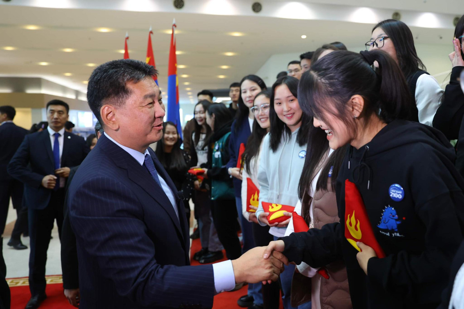 “Ерөнхийлөгчийн илгээлт-2100” тэтгэлэгт хөтөлбөрийн эздэд захиа, даалгавар гардуулж байна